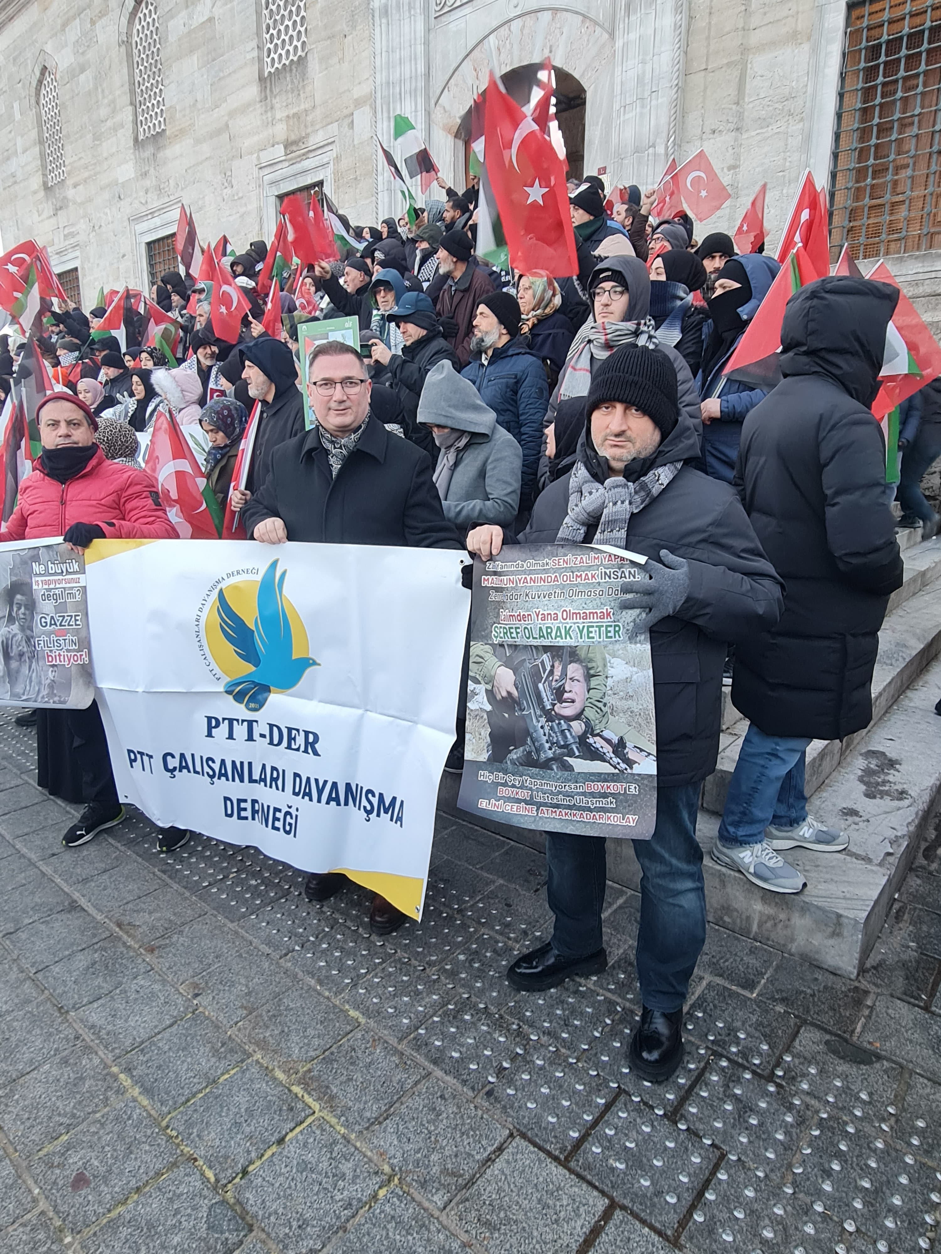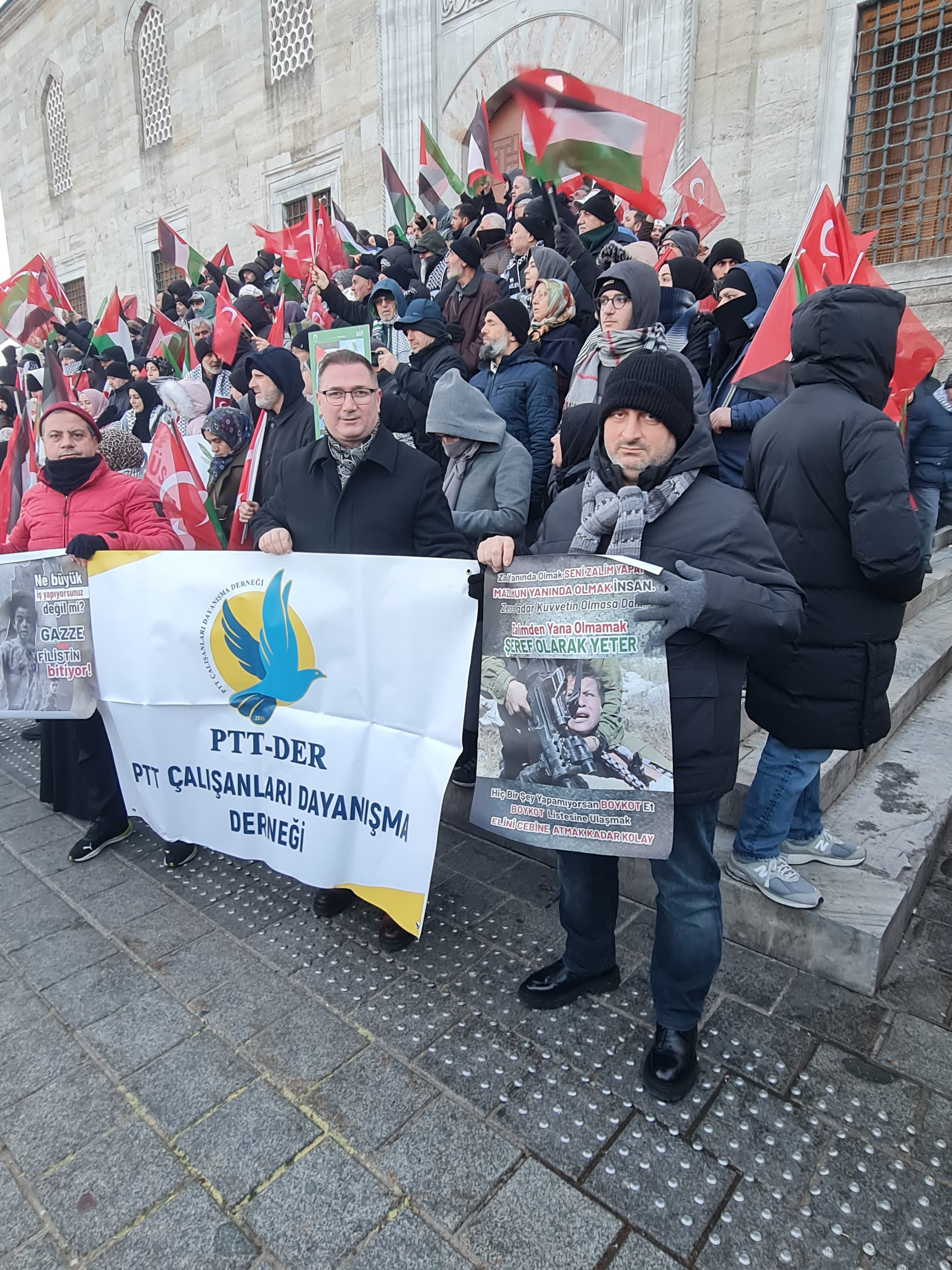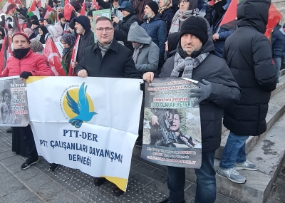 01 Ocak 2026 sabahı İstanbul Galata Köprüsünde gerçekleştirilen Filistin’e Destek Yürüyüşüne PTT Çalışanları Dayanışma Derneği (PTT-DER) olarak katılım sağladık.