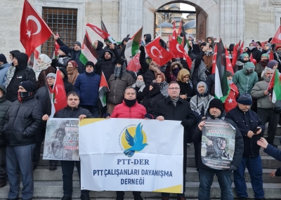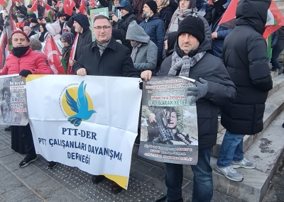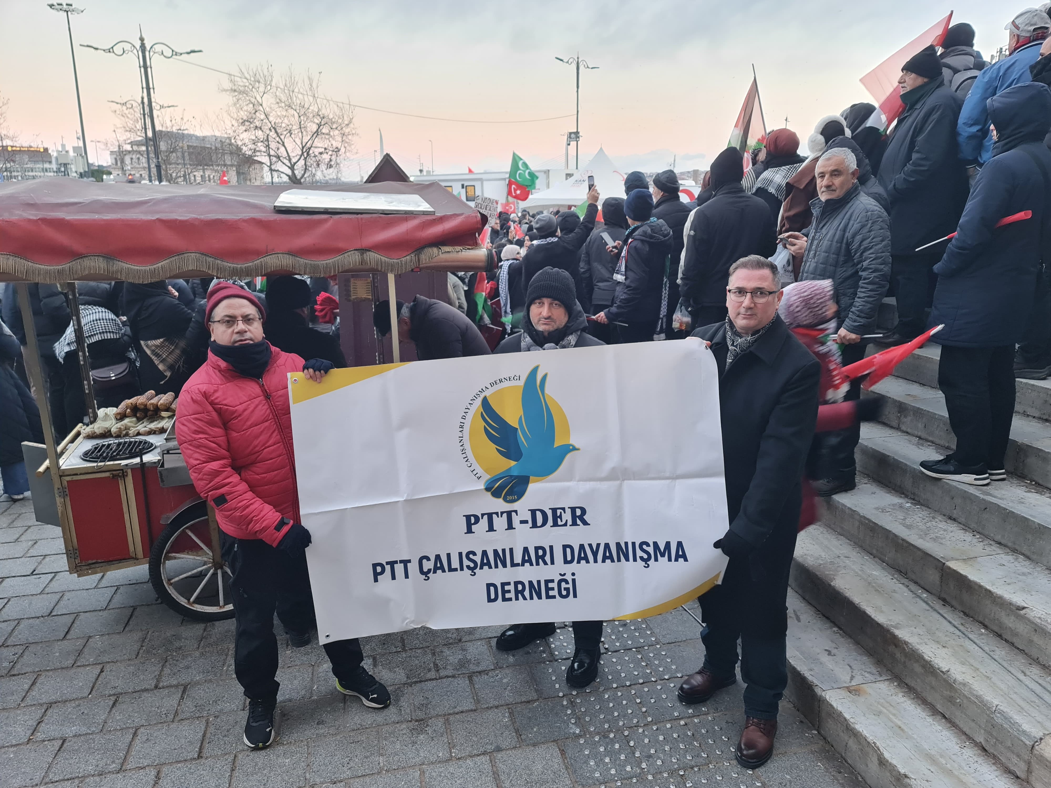 01 Ocak 2026 sabahı İstanbul Galata Köprüsünde gerçekleştirilen Filistin’e Destek Yürüyüşüne PTT Çalışanları Dayanışma Derneği (PTT-DER) olarak katılım sağladık.